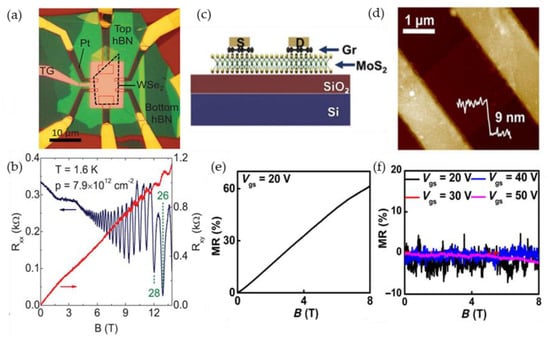 147. Huang, H.; Guan, H.; Su, M.; Zhang, X.; Liu, Y.; Liu, C.; Zhang, Z.; Liu, K.; Liao, L.; Tang, N. Gate-Tunable Linear Magnetoresistance in Molybdenum Disulfide Field-Effect Transistors with Graphene Insertion Layer. Nano Res. 2020, 14, 1814–1818. [Google Scholar] [CrossRef]