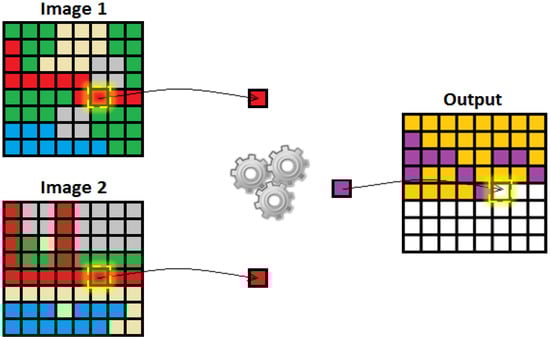 The filtered images are passed through the pixel-matching algorithm where the pixels of the original image and the filtered image are compared and the number of matched and mismatched pixels are computed. The code works by extracting the intensity of pixels that have the same coordinates within the image. If the pixel intensity of both images matches, then it is marked as a common pixel, otherwise it is denoted as a mismatched pixel. In Figure 3, the yellow output is the mismatched pixels while the purple output is when the pixels match.