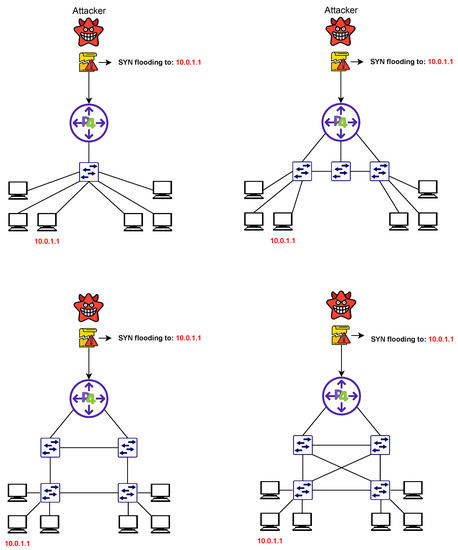 - Yan, Q.; Yu, F.R. Distributed denial of service attacks in software-defined networking with cloud computing. IEEE Commun. Mag. 2015, 53, 52–59. [Google Scholar] [CrossRef]