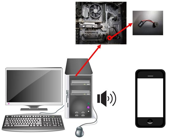 In our attack scenario, it is assumed that an attacker infects malicious code to a victim computer with a Linux operating system and then controls all privileges. The way to insert malicious code into a computer from a network-separated computer is to insert malicious code into a software update file by using USB containing malicious code or attacking a software company. Many companies and laboratories restrict the use of external speakers for several reasons, such as security. Therefore, our experiment also assumes that the computer does not have speakers except for internal speakers. Therefore, we propose an attack that uses the computer motherboard of the internal speaker to extract information. Usually, internal speakers are used to tell users if there are any errors during computer booting and whether they booted normally. Therefore, most computers without external speakers also have internal speakers.