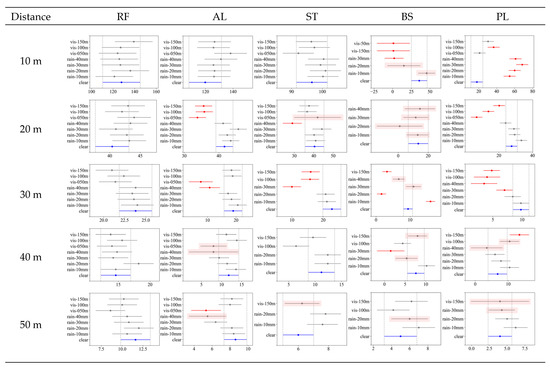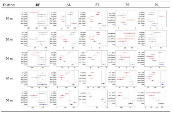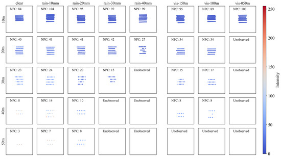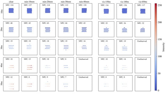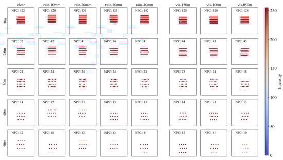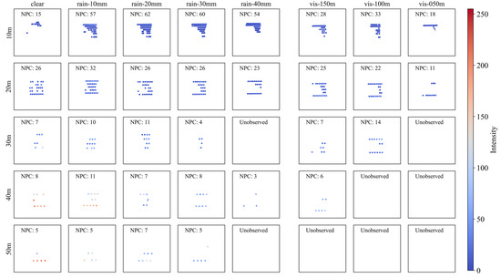 4.2. Point Cloud Plots According to Precipitation and Visibility Distance