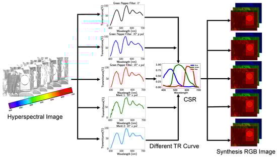 The above figure demonstrates the details of how to replace different transmittance curves in the optical filter layer. As a result, a different RGB feature map was generated by putting the hyperspectral image into the optical filter layer and CSR layer.