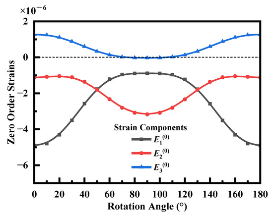 Upon Equation (3), the occurrence of zero frequency shifts in some rotation angles depends on the initial stress components and the corresponding zero-order Mindlin strains. Variation of the rotation angles results in the variation of these four strain components. By using Equation (3), a small strain component was neglected, and applying [16], one obtains: