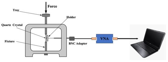 The quartz crystal resonator (QCR) consists of a quartz substrate sandwiched between two electrodes. It is widely used as a sensor for measuring external parameters, such as pressure [1,2], mass [3,4,5], and humidity [6,7,8], due to its compact size, high frequency, stability, and good repeatability.