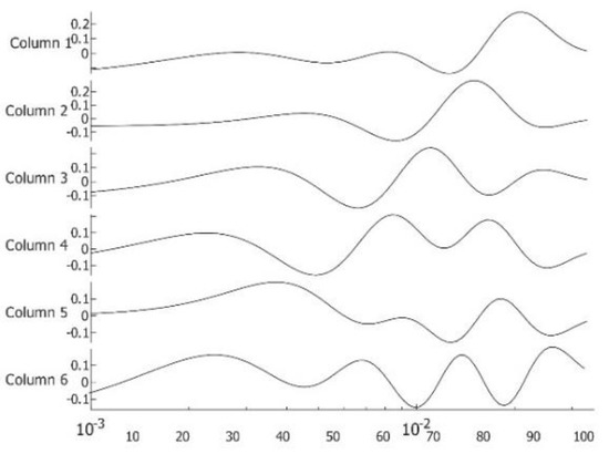 We use capital letters for the transformed function, and s is the transformed variable. The right-hand sides of Equations (A3) and (A4) describe the nature of the source of excitation. Using the Laplace transform definition, we change the variable from s to , and perform an analytical inversion of the transform. For the next derivations, we drop the variable r.