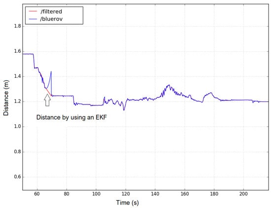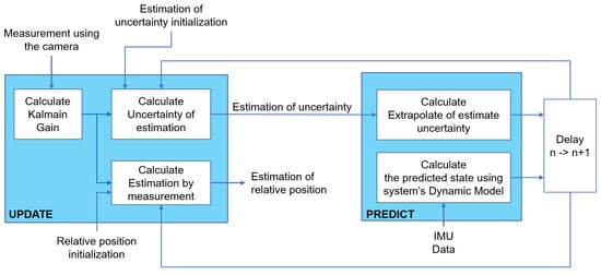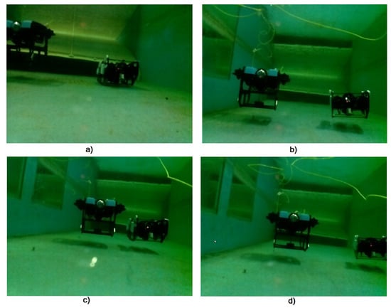 - Proposed to use an EKF to estimate the position of the underwater vehicle follower-leader in case the robot is out of view of the camera. Compared with [30], the dynamic adaptive Kalman filter was used to navigate a group of AUVs in cases with and without GNSS. We implemented EKF for underwater vehicles and used only vision and IMU data. The use of cameras is low cost compared to positioning methods using sonar technology, which according to article [15], costs thousands to hundreds of thousands of dollars.