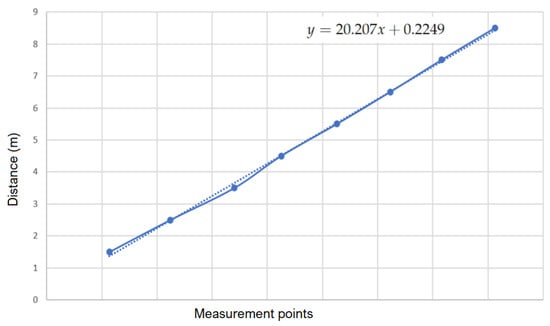 4.2. Determination of the Function of the Real Distance and the Distance Measured by the Camera