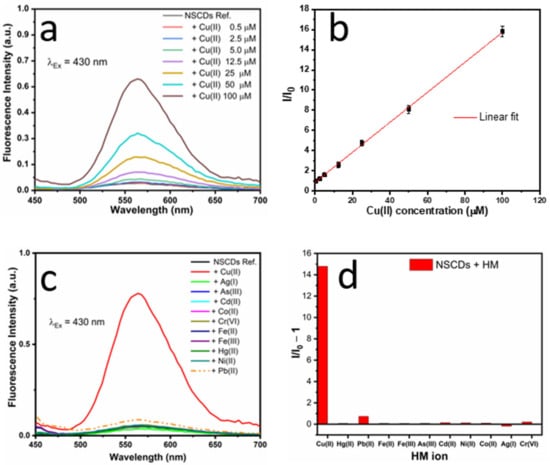 - Chen, S.; Chen, C.; Wang, J.; Luo, F.; Guo, L.; Qiu, B.; Lin, Z. A Bright Nitrogen-doped-Carbon-Dots based Fluorescent Biosensor for Selective Detection of Copper Ions. J. Anal. Test. 2021, 5, 84–92. [Google Scholar] [CrossRef]
