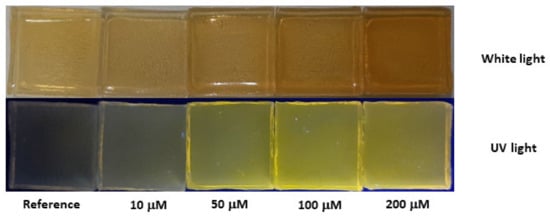3.6. Results—Colorimetric and Fluorescent Sensing with Solid-State Agarose Matrices