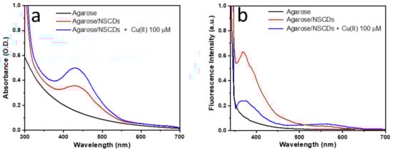 2.4. Carbon Dots incorporated Agarose (Aga-NSCDs) Hydrogel Film Preparation