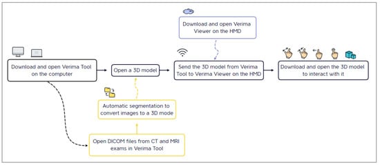 - Verima Tool. It is the PC software that converts medical volumetric DICOM files to surface 3D models through an automatic segmentation system based on a deep learning algorithm trained to recognize different anatomical tissues. The tool allows 3D cases to be shared with the HMD connected to the same local network.