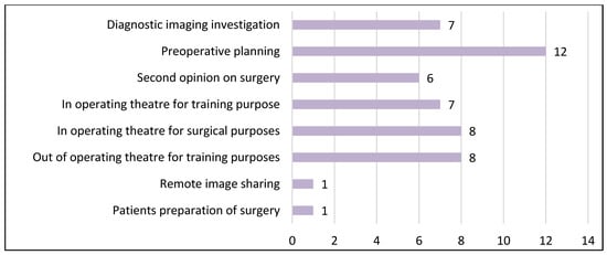 In the last section of the questionnaire, we asked the subjects in which contest they would like to use the MR visualization of medical images in the future. The participant could choose from multiple options and the collected answers are reported in Figure 8.