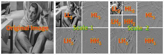 DWT decomposes the image into low–resolution coefficient maps. Here, the scale is 2. We use a scale of 1 to replace the down–sampling operation.