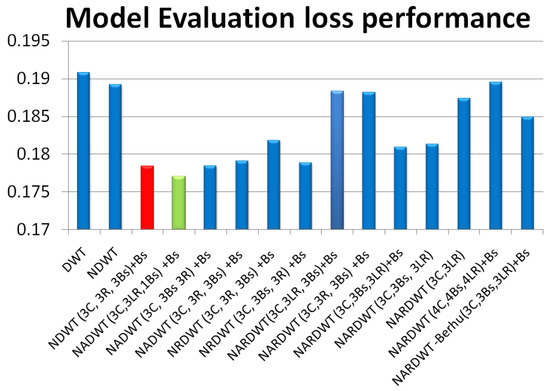 Model loss performance. The best is DWT + Attention followed by Residual + Attention architecture.