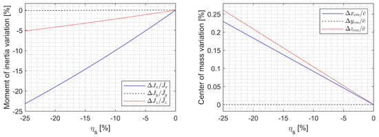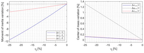 Finally, the inertia matrix variation due to morphing can be obtained by subtracting Equation (35) from Equation (36) as
