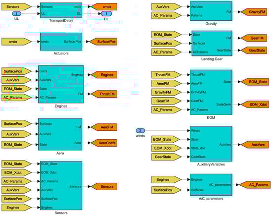 The ADS provides the barometric altitude, AOA, AOS, dynamic pressure, TAS, and temperature ratio. At a sampling rate of 50 Hz, the MIDG provides Euler angles, geodetic latitude, longitude, altitude, and geographical velocity. MAG3 offers 3-axis acceleration and angular velocity. The pots provide control surface deflections, and the ECU provides data on the left and right engines’ internal operations. Sensor measurements are corrupted by appropriate dynamics, scale factor error, bias, white noise, saturation, truncation error, and transport delay.