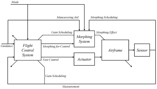 An advanced aerial platform known as a morphing unmanned aerial vehicle (UAV) is capable of controlled, large-scale shape transformations while in flight, which improves efficiency, adaptability, and performance across a range of flight scenarios and missions. Modern UAV missions are becoming increasingly complex [1,2], making it difficult for fixed-shape aircraft to perform their assigned tasks effectively and efficiently. Consequently, the demand for adaptable, morphing aircraft has gradually increased. Since the first manned flight, aircraft designers have been intrigued by the concept of variable-geometry aircraft. Previously, the ability to change shape was used only to modify flight characteristics. However, recent advancements in materials, sensors, and actuators have sparked interest in the development of morphing aircraft [3]. In the development process, complex trade-off analyses and multidisciplinary optimization are frequently employed. Effective actuator drive systems also permit morphing for direct flight control. As new concepts for morphing aircraft emerge, the demand for efficient control methods is increasing [4]. However, control system design frameworks continue to fail to maximize all possible benefits of morphing.