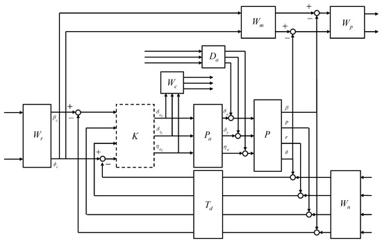There is significant coupling between the control inputs and the main outputs in the lateral-direction aircraft dynamics. The interconnection shown in Figure 19 was considered for the control design.