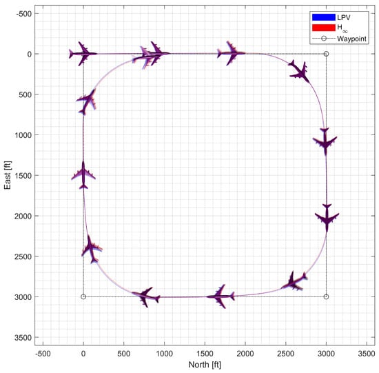 Classical gain scheduling techniques have been widely adopted for systems with a wide range of operations. Control design methods based on linear time-invariant (LTI) models such as classical control, loop-shaping, (LQG) optimal control, suboptimal control, mixed-sensitivity control, and mu-synthesis can be applied. Various linear and classical control methods have been applied to control morphing aircraft, including proportional–integral–derivative (PID) control [7]. Many studies have adopted conventional gain scheduling techniques or switching methods [8,9]. Learning-based or data-driven approaches (reinforcement learning, neural-network-based adaptive control) [10,11,12] and adaptive approaches [12,13,14] have also been adopted to address the time-varying nature of morphing aircraft. Control allocation methods have been adopted to address an overactuated model of morphing aircraft from incorporating morphing parameters into a control input [15]. Various nonlinear control methods have also been applied, including sliding mode control [16,17], nonlinear dynamic inversion [18], backstepping control [19], and disturbance-observer-based control [20,21,22]. LPV and robust control methods are also extensively applied [23]. Many LPV techniques, such as switching LPV control, model predictive control based on the LPV model, data-driven strategies, and LPV control with scheduling uncertain parameters, have been applied to aerospace domain problems [24,25,26,27,28]. Fuzzy gain scheduling techniques have also been studied [29,30].