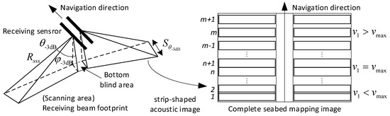 In Figure 1, a signal–beam side–scan sonar forms a narrow receiving beam of (in degrees) along the azimuth, which is determined by the length and operation frequency of the sensor as