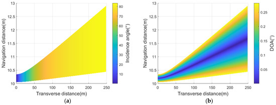 Echo parameters in the receiving beam footprint (Figure 6c): (a) incident angle; (b) DOA.