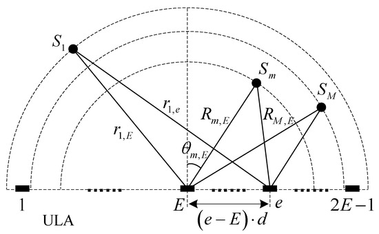 As shown in Figure 8, the receiving sensor is a uniform linear array (ULA) composed of piezoelectric ceramic elements with the same frequency response characteristics. In the Fresnel zone, the echo signal of the scattering point on the receiving sensor can be expressed as