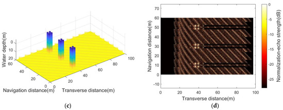 Then, the acoustic imaging module collects these simulated echo signals to combine the strip–shaped images into a complete mapping image. Moreover, the simulated echo signal may provide a large number of controllable seabed imaging samples for underwater target recognition and image segmentation algorithm research [29].