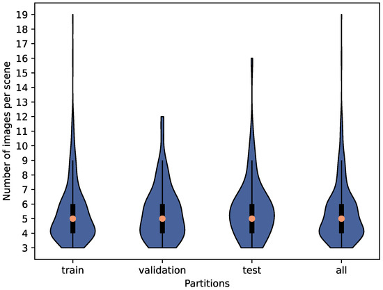 First, the dataset is split into training (≈80%), validation (≈10%), and test (≈10%) sets. Since there are multiple images of each furniture from each viewpoint, images from the same viewpoint are not put in different partitions of the dataset. The dataset is split in such a way as to keep the distribution of images per class similar in each partition (Table 3). It is also partitioned in such a way as to keep the distribution of images per viewpoint angle (scene) similar. These distributions are shown in Figure 10.