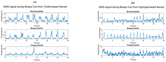 - Kim, H.; Kim, S.; Lim, D.; Jeong, W. Development and characterization of embroidery-based textile electrodes for surface EMG detection. Sensors 2022, 22, 4746. [Google Scholar] [CrossRef]