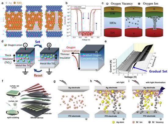 - Tian, X.; Yang, S.; Zeng, M.; Wang, L.; Wei, J.; Xu, Z.; Wang, W.; Bai, X. Bipolar electrochemical mechanism for mass transfer in nanoionic resistive memories. Adv. Mater. 2014, 26, 3649–3654. [Google Scholar] [CrossRef]