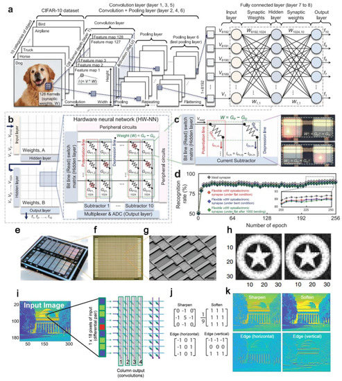 - Yao, P.; Wu, H.; Gao, B.; Tang, J.; Zhang, Q.; Zhang, W.; Yang, J.J.; Qian, H. Fully hardware-implemented memristor convolutional neural network. Nature 2020, 577, 641–646. [Google Scholar] [CrossRef] [PubMed]