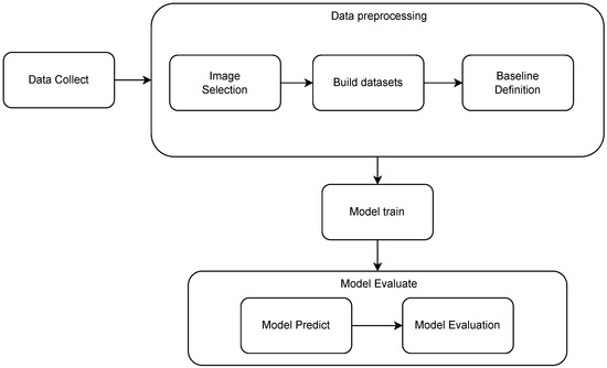 Flowchart of the system. The first step is data collection, followed by data preprocessing. After the data are preprocessed, they are used to train the ML models, and the final step is to evaluate the models, verify their quality, make predictions, and calculate the errors.