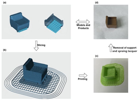 AM is also known as layer manufacturing, rapid prototyping or 3D printing [11]. Different from subtractive manufacturing techniques, such as milling and grinding. It manufactures designed parts by removing material. Additive manufacturing describes the manufacturing process of joining materials to create parts from 3D model data, usually layer by layer [12]. The appeal of additive manufacturing to companies and industries is clear, as it has not only revolutionized the way final part shapes are obtained, but also offers a promising way to develop highly customized and personalized products [13]. AM empowers intelligent manufacturing, and on-demand personalized customization becomes a new direction of development [14]. With the gradual emergence of commercial value such as easy molding, personalized customization, and rapid manufacturing, the application scenarios of 3D printing are becoming more and more diverse. At present, 3D printing has been widely used in construction, footwear, industrial design, jewelry, engineering, aerospace, dentistry, automobiles and other fields. Some manufacturers have also begun to use 3D printing to manufacture aircraft seats, car engines, etc. [15]. After the production of products with the help of cutting-edge 3D printing technology, the innovation of the products’ production process has been accelerated, and its appearance, design, and internal functions have also been further improved.