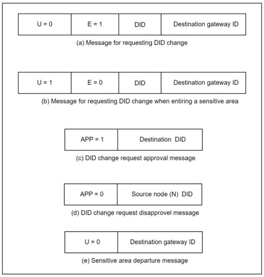 - The node is about to enter a sensitive area. In this case, the node sends a sensitive area status (U = 1) to change the DID whether its lifetime is about to expire or not. This case will be explained in more detail later.
