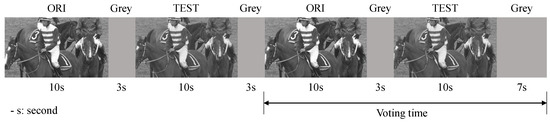 DSCQS method, where the original sequence (ORI) and test sequence (TEST) are pseudo-randomly ordered for each presentation.