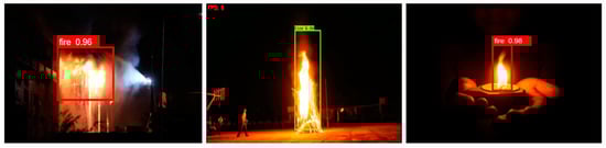 Here, we tested YOLOv6 in the real world by comparing many images of the fire taken under varying lighting conditions. There will either be limited lighting or a lot of lighting at the site where the fire detection is taking place. This will affect how well fires are detected in this sort of setting. The model’s ability to recognize faint targets is enhanced by a large-scale feature map [58], although it still suffers from over- or underestimation in low-light settings. Figure 8 and Figure 9 can be examined to observe the results of the detection procedure. By equating the model’s detection performance to that of the Faster R-CNN, YOLOv3, and YOLOv6 models, we find that it has excellent performance over a wide range of lighting situations and is highly resistant to variations in illumination. The YOLOv6 model’s benefits can mitigate the destruction caused by forest fires, lessen the effects of global warming on people, and encourage long-term growth in a sustainable direction.