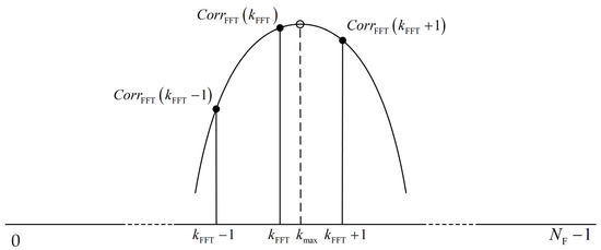 According to the above timing synchronization algorithms, the m correlation peak value of can be obtained as follows: . Next, zeros are filled behind these m peaks, and then the -point FFT operation is performed on the resulting sequence, and the FFT results are used for frequency estimation. The obtained sequence can be represented as .