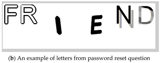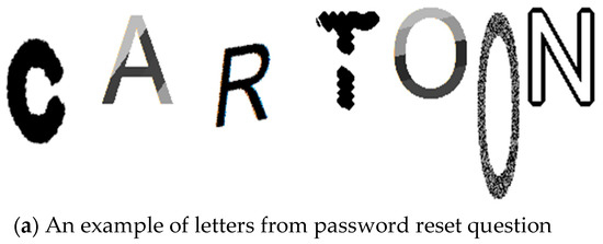 12]. It relies on various image processing methods, such as dilatation and skeletonization. The CAPTCHA letter generation algorithm was chosen in hopes of preventing hackers from finding similar images on the web and to block boots from reading reset questions. After processing, each letter or reset question has a different style and size. Before and after the result of embedding the reset, a question is presented in