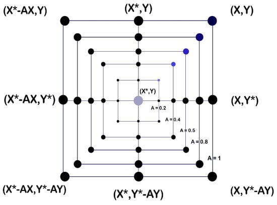 Shrinking encircling mechanism: for the achievement of this behavior, the value of needs to be decreased in Equation (3) as a result of decreasing . Additionally, a random value in the range of [−a, a] will be added to reduce the range of . Over the iteration process, a is reduced from 2 to 0. Using random values for in [−1, 1], a search agent’s new position can be defined anywhere between the agent’s starting position and the position of the current best agent. In a two-dimensional space, Figure 4 displays the possible positions from (X, Y) to (X*, Y*) that is achievable by 0 ≤ A ≤ 1.