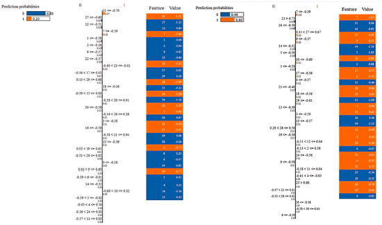 - The interpretable model-agnostic explanations (LIME) technique was used for further explanation of features’ contribution towards the final classification.