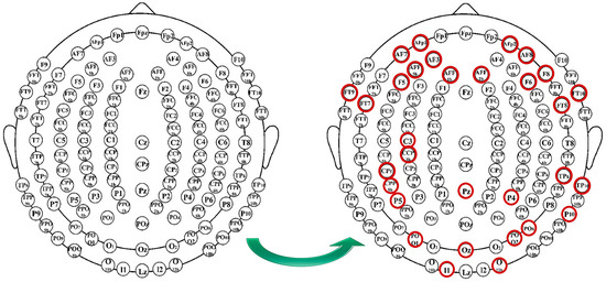 Two classes of epochs from BCI Competition III IVa were gathered from five different courses. EEG signals in each period total 68 channels. The training set receives 80% of the total data gathered from the individuals, while the test set receives 20%. Each subject has a total of 280 epochs, and following the augmentation process, the number of epochs in the training set is multiplied by ten. As a result, each subject’s training and test sets had 10 × 280 × 0.8 and 280 × 0.2, respectively.