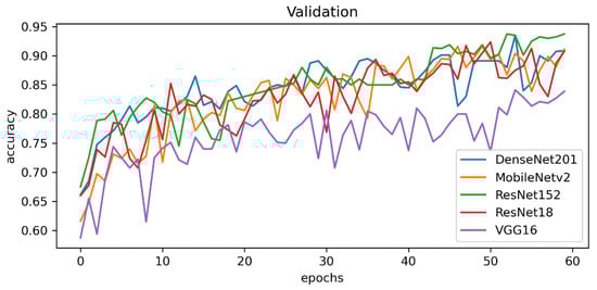 Validation accuracy of the CNN models for the backbone of explainable AI.