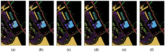 To verify the effectiveness of the network and the influence of other variables on the classification results of hyperspectral images, we used two published hyperspectral image datasets, Salinas (SA) and Pavia University (PU) [53], as experimental data. The datasets are shown in Figure 4.