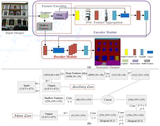 - Chen, L.C.; Zhu, Y.; Papandreou, G.; Schroff, F.; Adam, H. Encoder–decoder with atrous separable convolution for semantic image segmentation. In Proceedings of the European Conference on Computer Vision (ECCV), Munich, Germany, 8–14 September 2018; pp. 801–818. [Google Scholar]