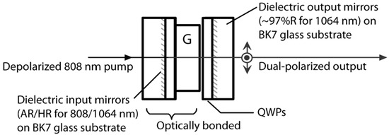 Schematic diagram of dual-frequency ceramic microchip Nd:YAG laser [20]. QWP: quarter-wave plate; G: glass.