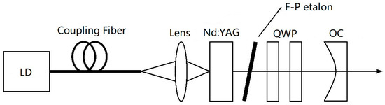 Diagram of the tunable two-frequency solid-state laser with coupled cavities [22]. LD: laser diode; λ/4 plate: quarter-wave plate.