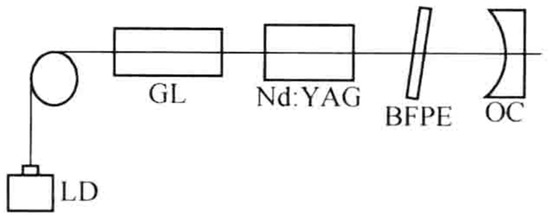 Experimental setup of diode-pumped birefringent dual-frequency Nd:YAG laser [23]. LD: laser diode; GL: gradient-index lens; BFFP: birefringent Fabry–Perot etalon; OC: output coupler.