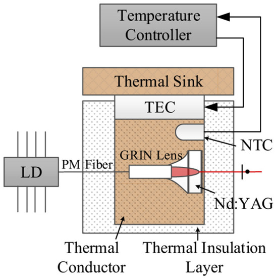 Schematic of microchip Nd:YAG dual-frequency laser [30]. LD: laser diode; TEC: thermo-electric cooler; NTC: negative-temperature-coefficient thermistor.