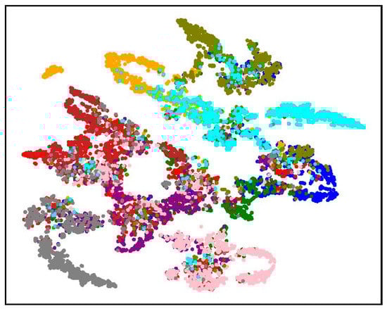 t-SNE visualization of the feature distribution of the adversarial examples of an 11-layer CNN trained by AT. Examples of the same color have the same ground-truth label.