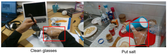 - Ren, X.; Philipose, M. Egocentric recognition of handled objects: Benchmark and analysis. In Proceedings of the 2009 IEEE Computer Society Conference on Computer Vision and Pattern Recognition Workshops, CVPR Workshops 2009, Miami Beach, FL, USA, 20–25 June 2009; pp. 49–56. [Google Scholar] [CrossRef]